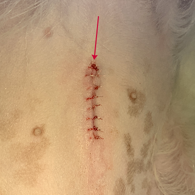 - 犬:皮下を吸収性縫合糸、皮膚をナイロン糸で縫合